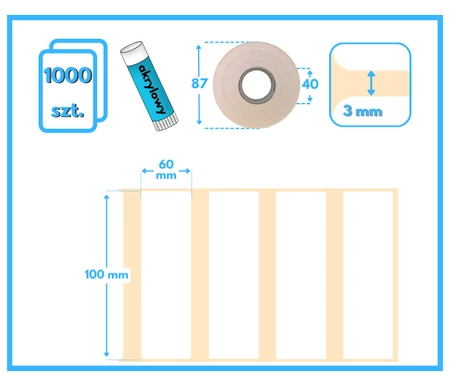 Etykiety termiczne samoprzylepne o wymiarze 100 x 30 mm, przeznaczone do drukarek termicznych, zadruk nie wymaga użycia kalek barwiących.