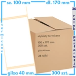 karton etykiet 100x170 mm termiczne 300 szt. 36 rol. PERFORACJA samoprzylepne białe