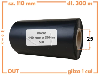 110x300 kalka WOSKOWA taśma termotransferowa wosk 110 mm 300m czarna OUT