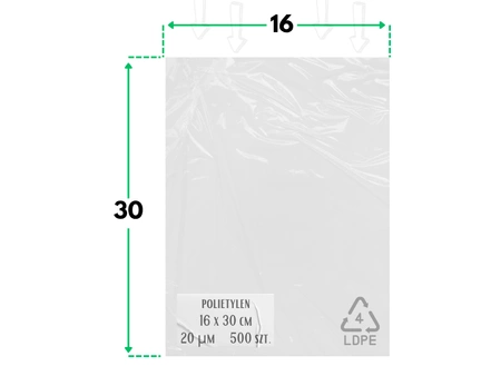 Worki foliowe do pakowania, szerokości 16 cm i długości 30 cm opakowanie 500 szt.