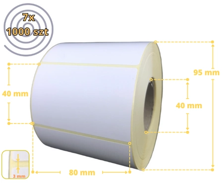 - 7 rolek etykiet 80 x 40 mm w nawoju 1000 na gilzie 40 mm