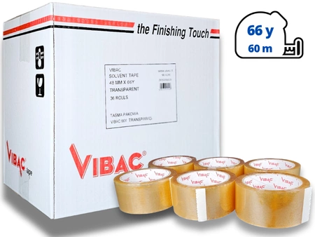 karton solvent 48mm x 66yd (60m) Vibac BEZBARWNA taśma klejąca 48/66 pakowa 36 sztuk
