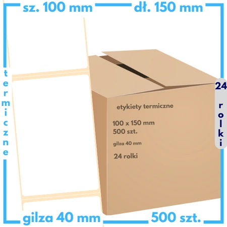 karton etykiet 100x150 mm termiczne 500 szt. 24 rol. samoprzylepne białe perforacja