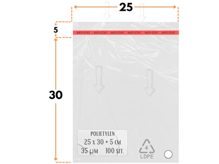 • 25x35+5 cm worki polietylenowe LDPE z odpowietrznikiem 100 szt.