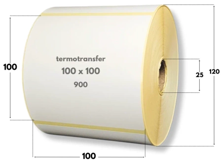 • Etykiety papierowe 100x100 nawój 900 szt., gilza 25 mm, klej akryl,