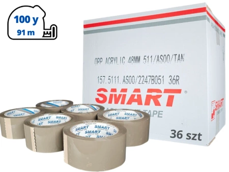 karton akryl 48mm x 100yd (91m) Smart BRĄZOWA taśma klejąca 48/100 pakowa 36 sztuk
