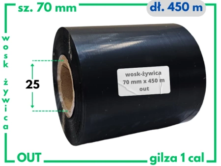70x450 OUT kalka WOSKOWO-ŻYWICZNA taśma termotransferowa wosk żywica 70 mm 450 m czarna