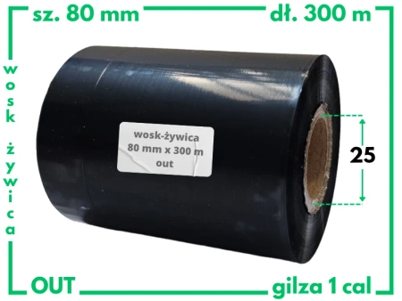 80x300 OUT kalka WOSKOWO-ŻYWICZNA taśma termotransferowa wosk żywica 80 mm 300 m czarna