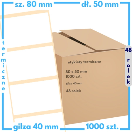 karton etykiet 80x50 mm termiczne 1000 szt. 48 rol. samoprzylepne białe