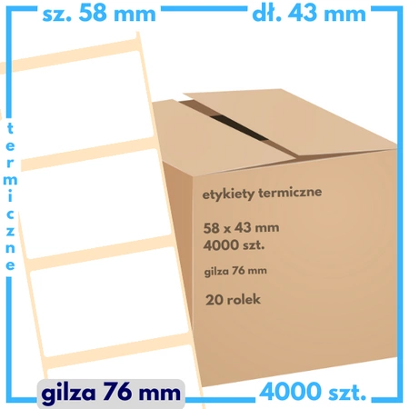 karton etykiet 58x43 mm termiczne 4000 szt. 20 rol. samoprzylepne białe