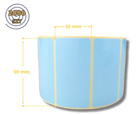 niebieskie jasne 50x25 mm etykiety TERMOTRANSFEROWE samoprzylepne 2000 szt.