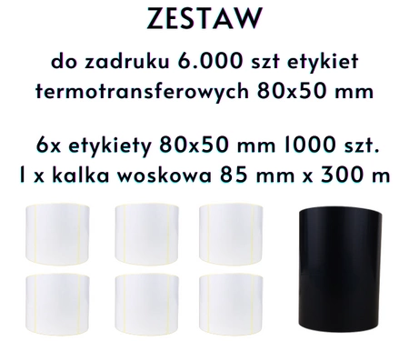 ZESTAW do zadruku 5700 szt. białych etykiet termotransferowych 80 × 50 mm.