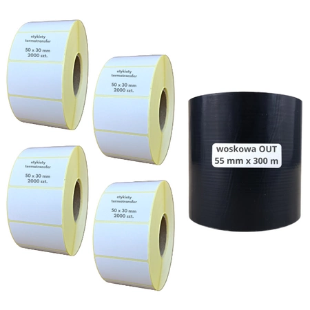 ZESTAW do zadruku 8000 szt. etykiet termotransferowych 50×30 mm.