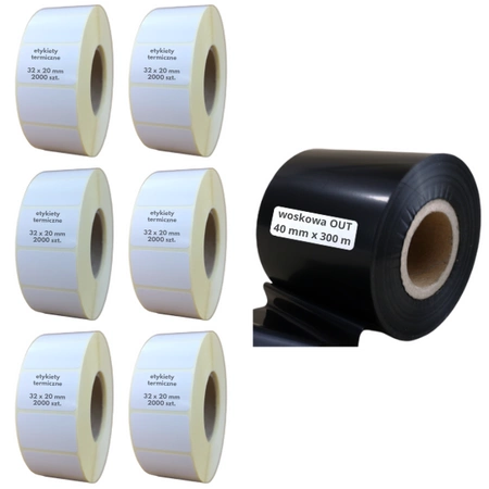 ZESTAW do zadruku 12000 szt. etykiet termotransferowych 32×20 mm.