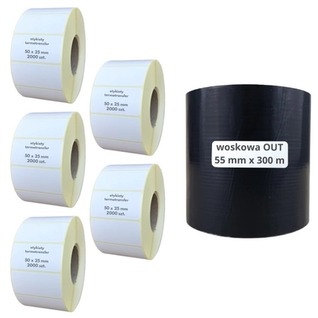 ZESTAW do zadruku 10 000 szt. etykiet termotransferowych 50×30 mm.