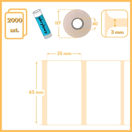 65x35 mm 2000 szt. gilza 40 etykiety samoprzylepne termotransferowe białe