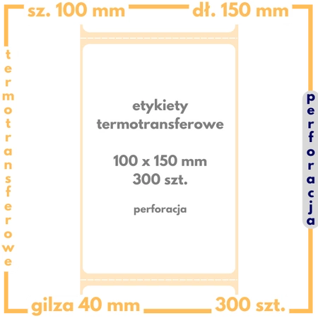 100x150 mm etykiety 300 szt. perforacja samoprzylepne termotransferowe białe