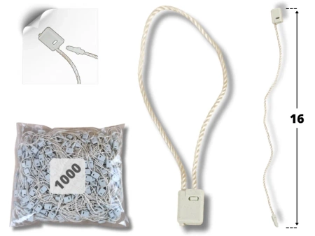 Sznurkowe łączniki w kolorze BEŻOWY, do ręcznego mocowania etykiet kartonowych.