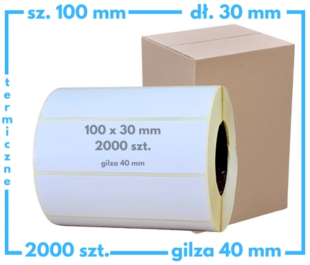 karton etykiet 100x30 mm etykiety termiczne 2000 szt. samoprzylepne białe 30 rol.