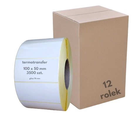 100x50 mm etykiety 3500 szt. gilza 76 samoprzylepne termotransferowe białe