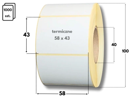 • Etykiety termiczne 58x43 nawój 1000 gilza 40 klej akryl