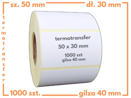 50x30 mm 1000 szt. etykiety samoprzylepne termotransferowe białe