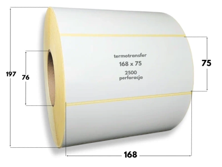 168x75 mm etykiety termotransferowe 2500 szt. gilza 76 perforacja samoprzylepne białe naklejki 168/75