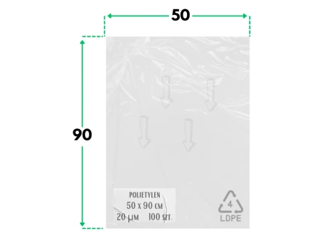 Torebki foliowe wykonane z polietylenu, o szerokości 50 cm oraz długości 90 cm.