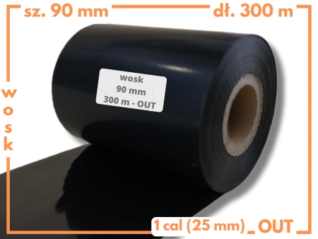 90x300 kalka WOSKOWA taśma termotransferowa wosk 90mm 300m OUT