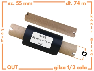 65x74 kalka WOSKOWA taśma termotransferowa wosk 65mm 74m czarna OUT