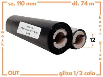 110x74 kalka WOSKOWA taśma termotransferowa wosk 110mm 74m czarna OUT